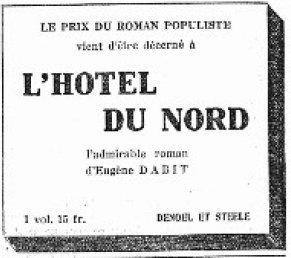 Le 18 : L’Hôtel du Nord obtient le premier prix Populiste. Un chroniqueur anonyme des Nouvelles Littéraires rend compte, sur un ton un peu persifleur, de la séance : « Nous savons maintenant ce que c'est qu'un roman populiste ; depuis le temps que les manifestes, les feuilletons et les enquêtes nous annonçaient la naissance d'une littérature prolétarienne, nous ne sommes pas fâchés de connaître exactement ce dont il s'agit. »