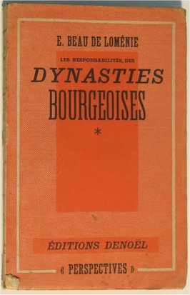 Le 8 : Décès d'Emmanuel Beau de Loménie. Cet historien maurrassien, descendant de Juliette Récamier, né à Paris le 4 février 1896, avait publié trois ouvrages chez Robert Denoël, dont le premier volume de sa grande fresque historique : Les Responsabilités des dynasties bourgeoises [5 volumes parus entre 1943 et 1973].
