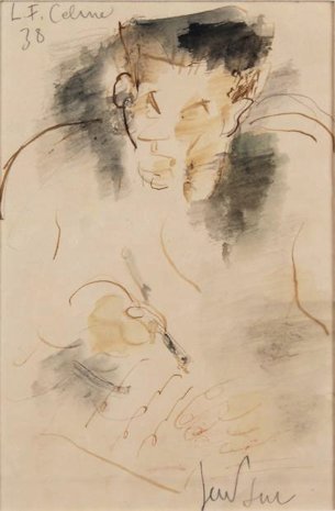 Le 18 : mise en vente à l'Hôtel Drouot d'une aquarelle de Gen Paul représentant Céline en 1938. Estimée 2500 à 3000 euros, elle en a réalisé 5 600.